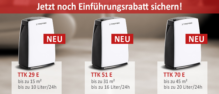 Entscheiden Sie sich für einen unserer drei neuen Luftentfeuchter und profitieren Sie von unserem Einführungsrabatt. Im Deal noch bis einschließlich 26. Oktober 2014 zum besonders günstigen Preis!