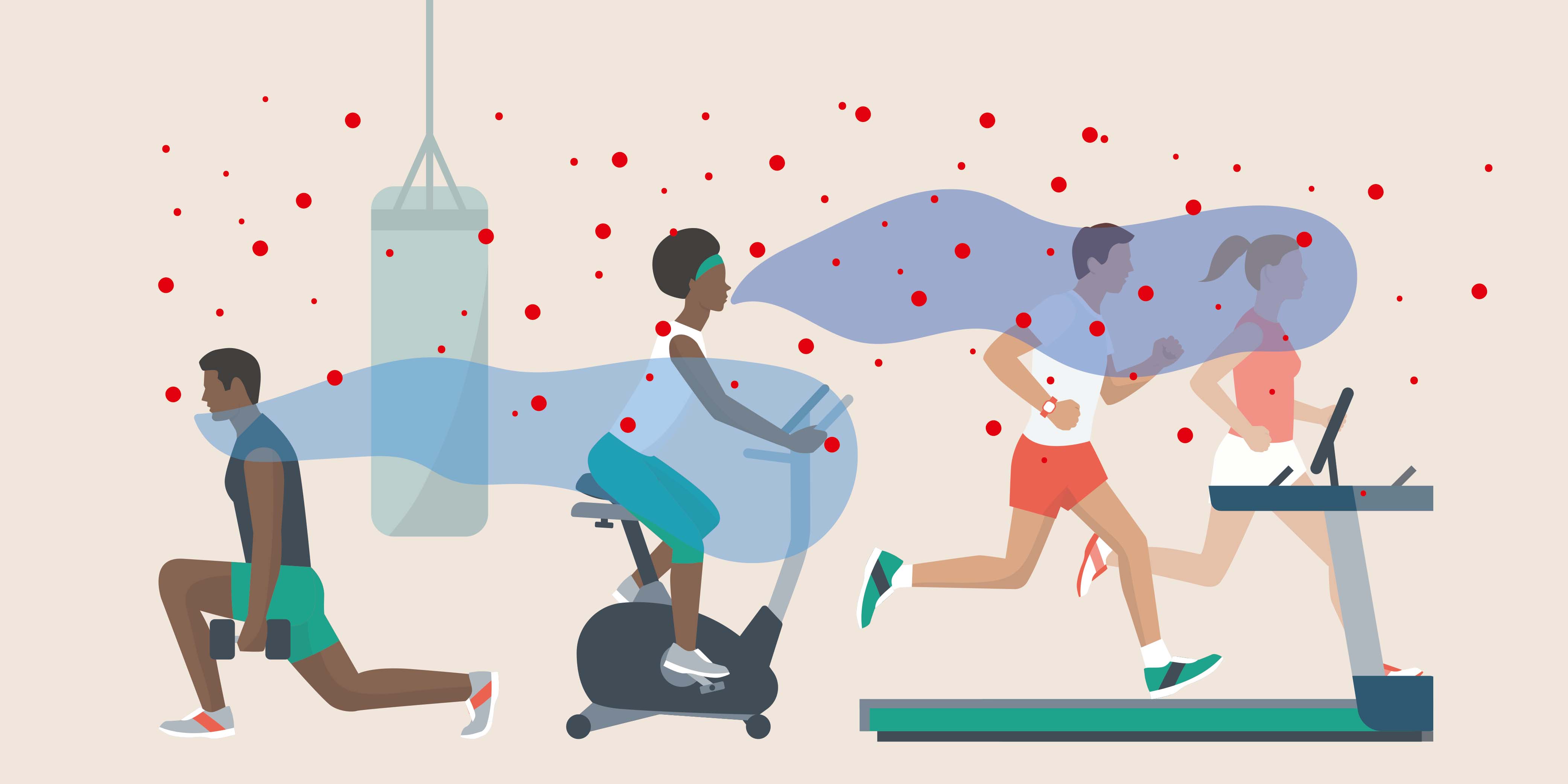 In einem Raum beispielsweise mit Spinning-Bikes oder Laufbandläufern „würde die Konzentration der Aerosolpartikel stark ansteigen“, sagt Benedikt Mutsch, Doktorand am Institut für Strömungsmechanik und Aerodynamik der Universität der Bundeswehr in München und Co-Autor der Studie. Je mehr Partikel in die Luft gelangen, desto größer sei dann auch die Wahrscheinlichkeit einer Covid-19-Infektion, falls nur einer der Trainierenden infiziert sei.