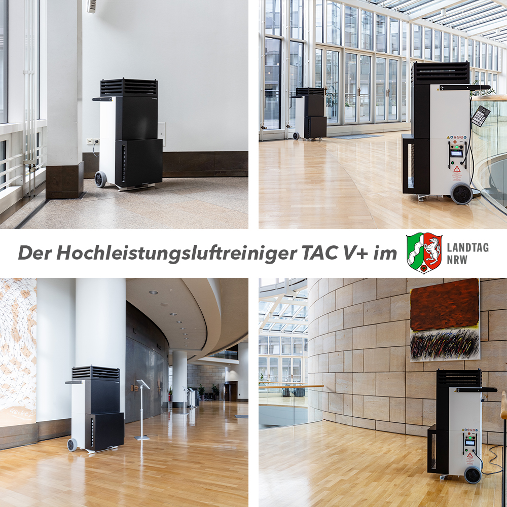 Von den Vorzügen der TAC V+ Hochleistungsluftreiniger können sich die Mitarbeiter und Abgeordnete der Ministerien übrigens persönlich überzeugen. Im Landtag Nordrhein-Westfalen selbst stehen seit vergangener Woche 41 Geräte.