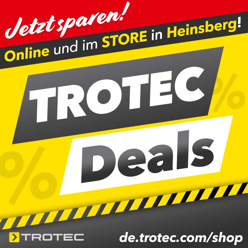 Auf unserer Startseite im Online-Shop de.trotec.com/shop werden Ihnen alle „TOP DEALS“ angezeigt. Navigieren Sie einfach mit den Pfeilen nach „rechts“ und „links“ und Sie finden alle aktuellen Deals.
