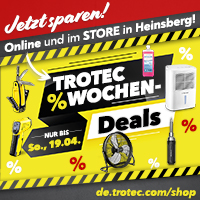 SO FINDEN SIE IHRE DEALS IM ONLINE-SHOP:Auf unserer Startseite im Online-Shop de.trotec.com/shop werden Ihnen alle „TOP DEALS“ angezeigt. Navigieren Sie einfach mit den Pfeilen nach „rechts“ und „links“ und Sie finden alle aktuellen Deals. |