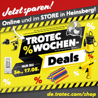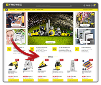 SO FINDEN SIE IHRE DEALS IM ONLINE-SHOP:Auf unserer Startseite im Online-Shop de.trotec.com/shop werden Ihnen alle „TOP DEALS“ angezeigt. Navigieren Sie einfach mit den Pfeilen nach „rechts“ und „links“ und Sie finden alle aktuellen Deals. |