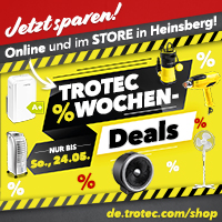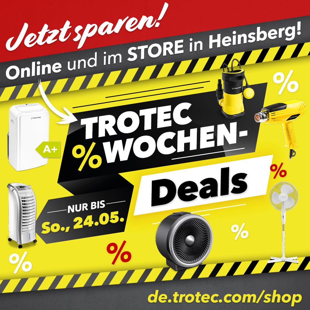 SO FINDEN SIE IHRE DEALS IM ONLINE-SHOP:Auf unserer Startseite im Online-Shop de.trotec.com/shop werden Ihnen alle „TOP DEALS“ angezeigt. Navigieren Sie einfach mit den Pfeilen nach „rechts“ und „links“ und Sie finden alle aktuellen Deals. |
