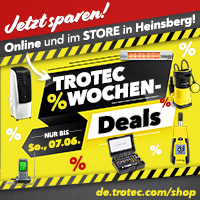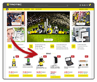 SO FINDEN SIE IHRE DEALS IM ONLINE-SHOP:Auf unserer Startseite im Online-Shop de.trotec.com/shop werden Ihnen alle „TOP DEALS“ angezeigt. Navigieren Sie einfach mit den Pfeilen nach „rechts“ und „links“ und Sie finden alle aktuellen Deals. |