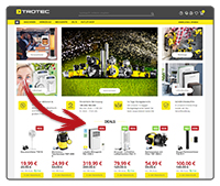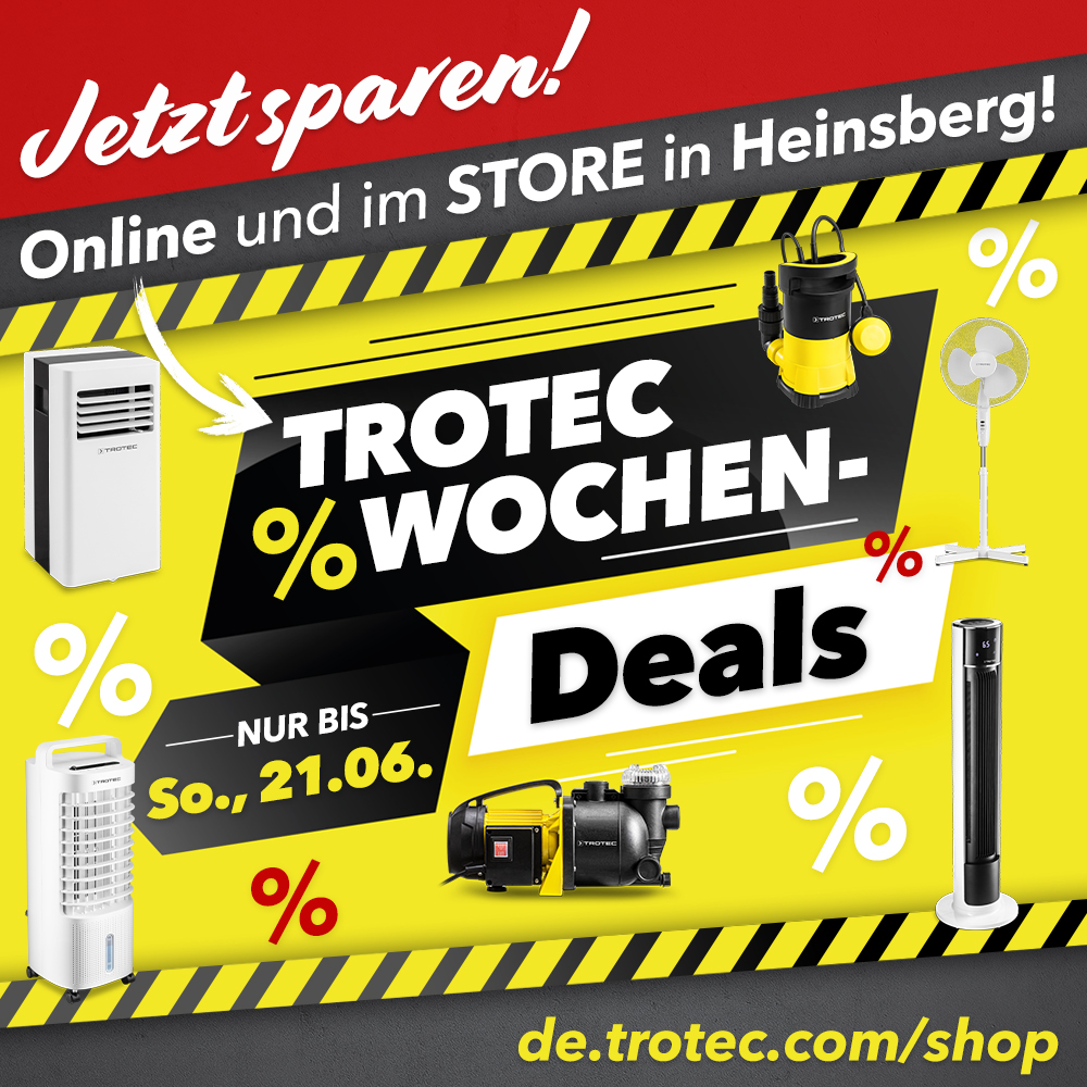 SO FINDEN SIE IHRE DEALS IM ONLINE-SHOP:Auf unserer Startseite im Online-Shop de.trotec.com/shop werden Ihnen alle „TOP DEALS“ angezeigt. Navigieren Sie einfach mit den Pfeilen nach „rechts“ und „links“ und Sie finden alle aktuellen Deals. |