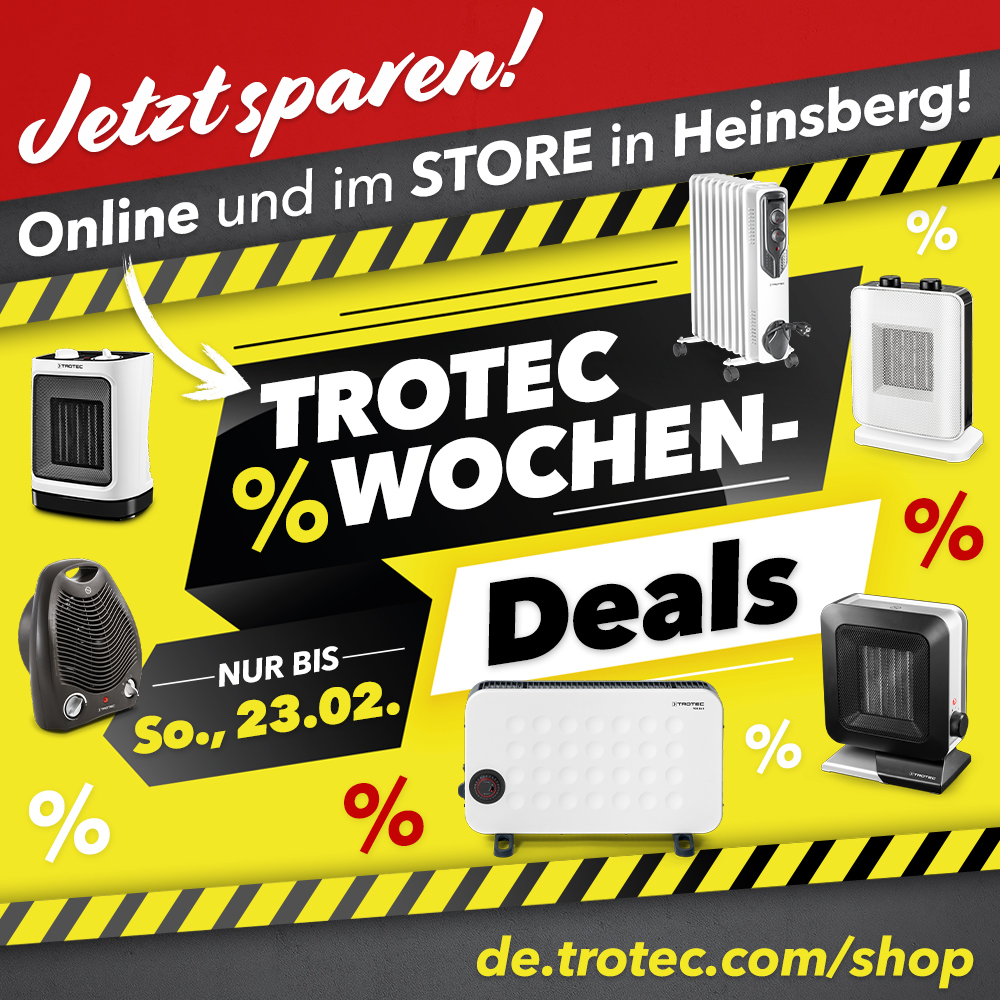 SO FINDEN SIE IHRE DEALS IM ONLINE-SHOP:Auf unserer Startseite im Online-Shop de.trotec.com/shop werden Ihnen alle „TOP DEALS“ angezeigt. Navigieren Sie einfach mit den Pfeilen nach „rechts“ und „links“ und Sie finden alle aktuellen Deals. |