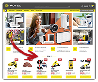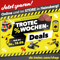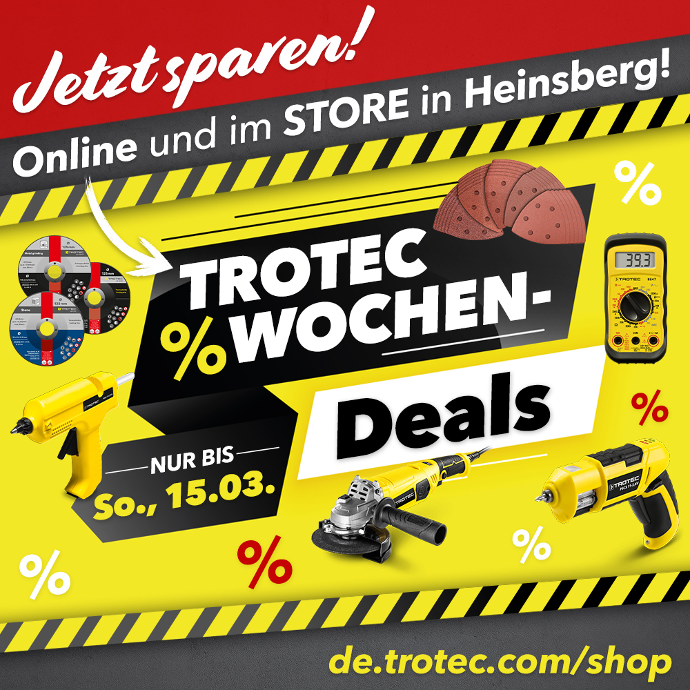 Auf unserer Startseite im Online-Shop de.trotec.com/shop werden Ihnen alle „TOP DEALS“ angezeigt. Navigieren Sie einfach mit den Pfeilen nach „rechts“ und „links“ und Sie finden alle aktuellen Deals.