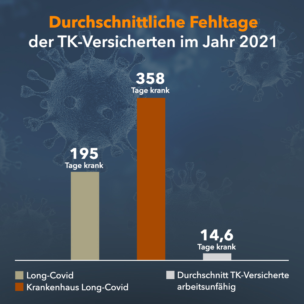 Nach Schätzungen des Bundesforschungsministeriums (BMBF) von Mai 2021 waren bis zu diesem Zeitpunkt mehr als 3,6 Millionen Menschen an Covid-19 erkrankt. Zehn Prozent davon, also rund 360.000 Personen, leiden dem BMBF zufolge an Spätfolgen ihrer Infektion. Welche zum Teil gravierenden Auswirkungen Long-Covid für die Betroffenen und ihre Arbeitgeber haben kann, zeigt der TK-Gesundheitsreport 2022 mit dem Schwerpunkt Long-Covid.