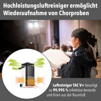 Hochleistungsluftreiniger mit HEPA-Hochleistungsfilter reduzieren die Aerosolbelastung und damit verbunden die Infektionsgefahr beim gemeinsamen Singen
