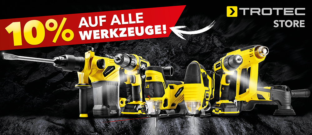 Schrauben, Hobeln, Schleifen, Sägen, Bohren… mit unseren Powertools sind Ihnen bei kreativen Projekten keine Grenzen mehr gesetzt. und Ordentlich sparen können Sie gleichzeitig auch noch, denn jetzt gibt es alle unsere Werkzeuge sogar noch 10% günstiger! Das Angebot ist nur im Trotec STORE in Heinsberg gültig.