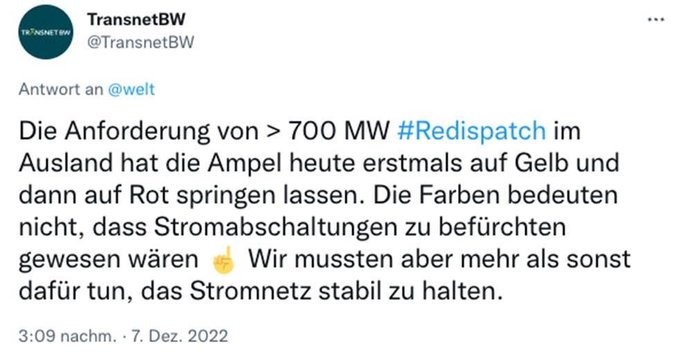 Auch wenn der Netzbetreiber unmittelbar nach der Warnmeldung erklärte, dass Stromabschaltungen nicht zu befürchten gewesen seien, schüren derartige Empfehlungen die Angst vor einem Blackout.