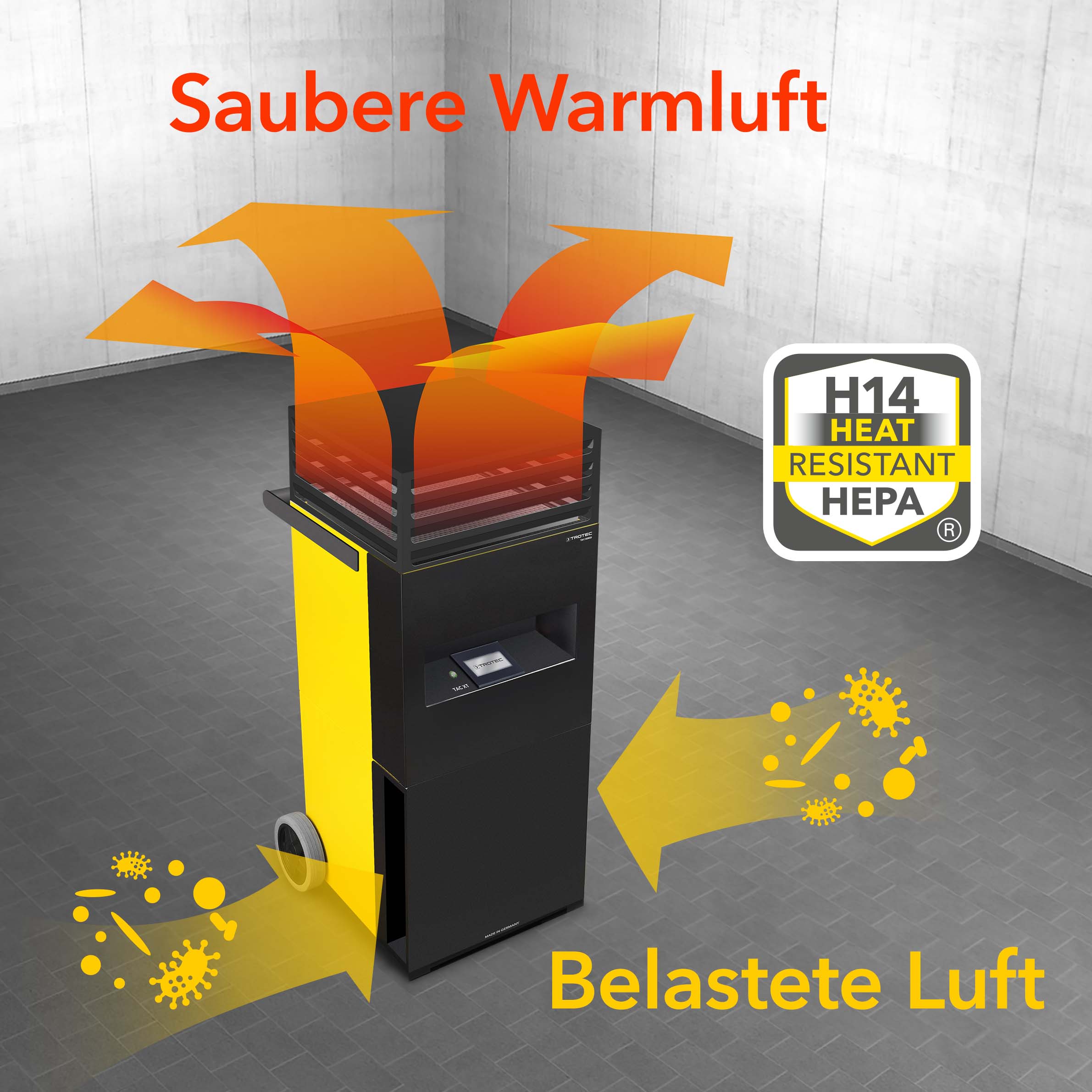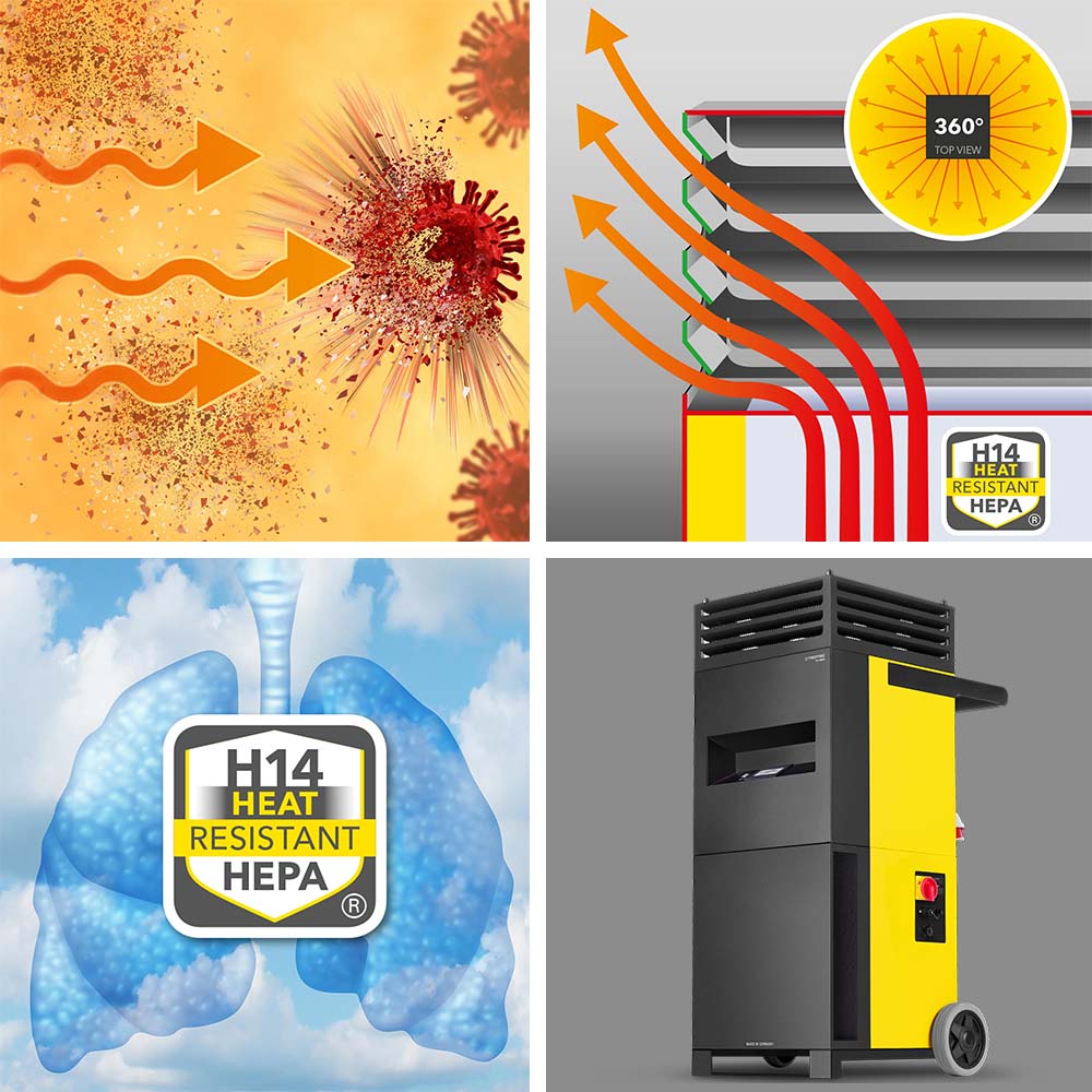 Mobile Raumluftbeheizung mit H14-HEPA-Luftreinigung
