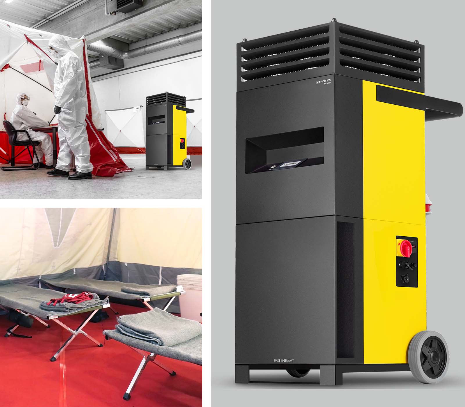 Hochwirksamer Schutz vor der Ausbreitung von infektiösen Viren und Keimen in den Notunterkünften - 360°-Raumbeheizung (18 kW, optional 27 kW) mit HEPA-Luftreinigung