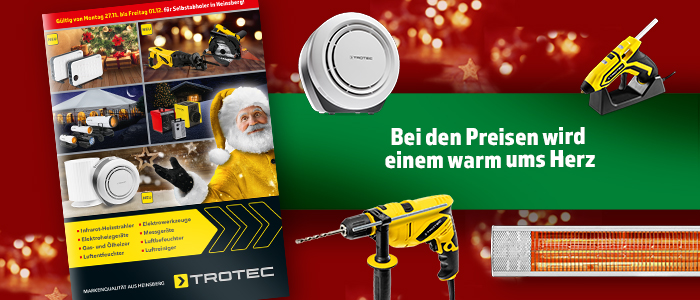 In unserem Werksverkauf in Heinsberg-Oberbruch bieten wir bis Freitag, 01.12. Infrarot-Heizstrahler, Elektroheizgeräte, Gas- und Ölheizer, Luftentfeuchter, Elektrowerkzeuge, Messgeräte und vieles mehr zu besonders günstigen Aktionspreisen an. Direkt vom Hersteller in original Trotec Markenqualität. Also einfach mal vorbeischauen und sparen… es lohnt sich!