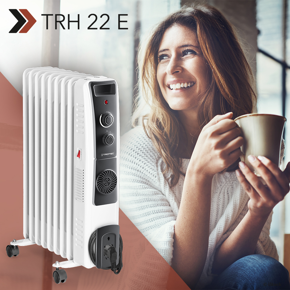 Draußen wird’s kühl und kühler. Höchste Zeit also, sich gegen einen überraschenden Kälteeinbruch zu wappnen. Da empfiehlt sich die kostengünstige Anschaffung eines TRH-E-Ölradiators wie des aktuell wieder lieferbaren TRH 22 E – als praktische bis zu 2.000 Watt starke Zusatzbeheizung an besonders kalten Tagen. Als temporäre Grundbeheizung von Garagen oder Kellern. Oder einfach als sinnvolle Reserve, falls irgendetwas mit der Heizungsanlage nicht stimmt. Dank des integrierten PTC-Heizelements inklusive zuschaltbarem Turbogebläse wird es ruckzuck mollig warm und durch den thermostatgesteuerten Automatikbetrieb bleibt der Energieverbrauch erfreulich gering.