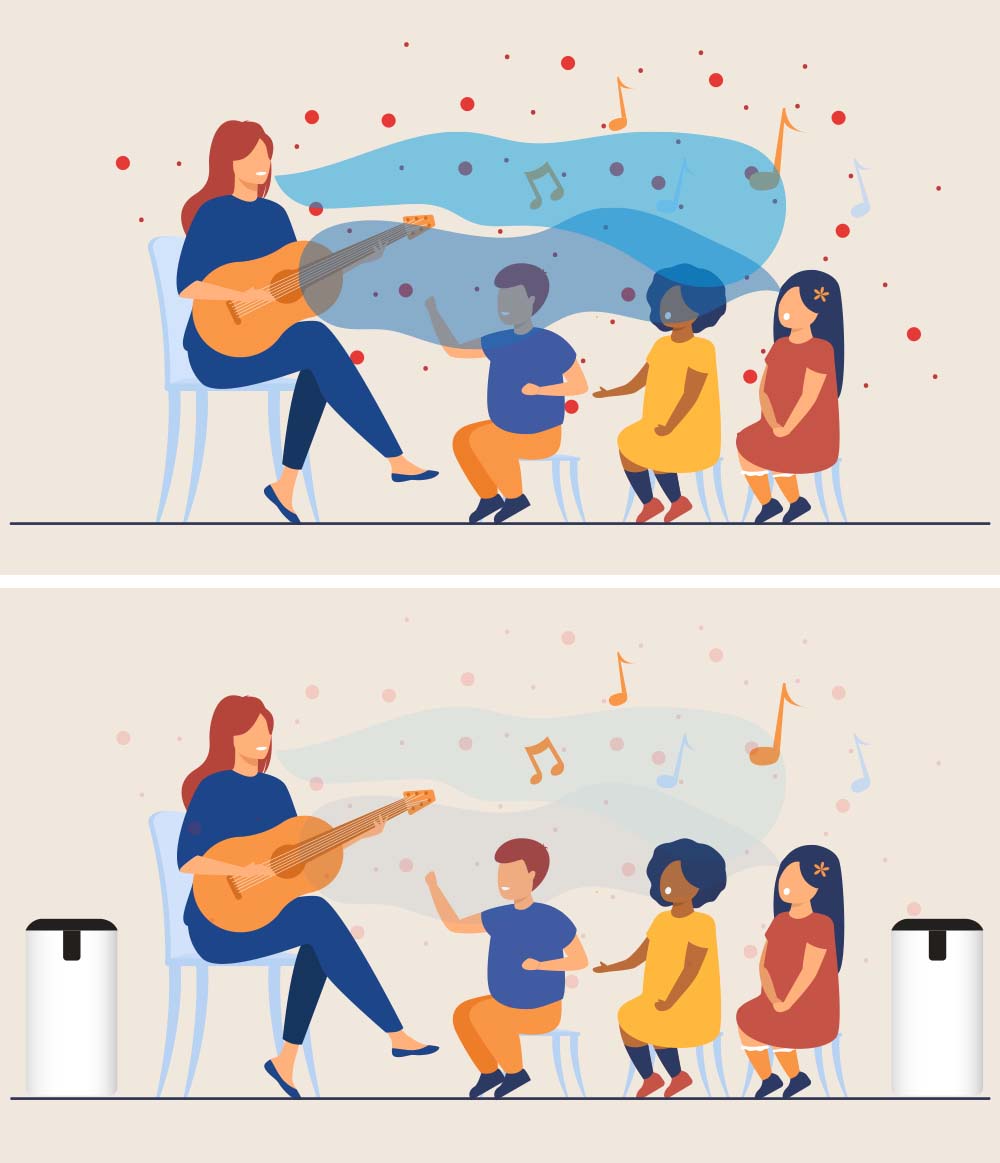 Eine Maßnahme zur Eindämmung der Pandemie ist die Verbannung gemeinschaftlichen Singens. In vielen Schulen wird mittlerweile zur Sicherung des Präsenzunterrichtes auf gemeinschaftliches Singen im Unterricht verzichtet. Zu groß sei die Gefahr, dass sich die Kinder über die beim Singen vermehrt ausgestoßenen Aerosolpartikel mit dem Coronavirus infizierten. Auch Chorproben, Musikunterricht und Kurse in musikalischer Früherziehung werden vielerorts ersatzlos gestrichen.