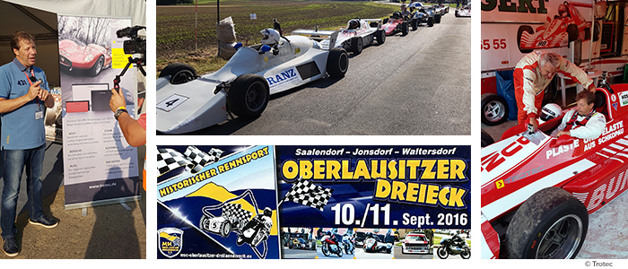 250 Rennmaschinen gingen am 10. und 11. September beim 4. Oberlausitzer Dreieck-Rennen an den Start. Mit dabei auch Trotec, als einer der Sponsoren sowie Trotec-Markenbotschafter und Rennfahrer Martin Utberg. Als „Special Guest“ stieg dieser in vier verschiedenen Rennwagen hinters Cockpit, um mit Vollgas über die 12 KM lange Rennstrecke zu jagen und Eindrücke für seine auf Motors TV ausgestrahlte Sendung Top Speed TV zu sammeln. Neben den interessanten Rennwagen der auch ostdeutschen Renngeschichte erwartete die ca. 20.000 Besucher ein interessantes Rahmenprogramm, in dem auch der DH-VPR+ Klimamanager zum Werterhalt von klassischen Fahrzeugen vorgestellt wurde.