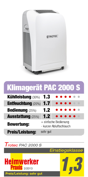 Um für die richtige Temperatur im Wohn-, Schlaf- oder Arbeitszimmer zu sorgen, empfehlen wir Ihnen das transportable Klimagerät PAC 2000 S – und nicht nur wir. Denn das unabhängige Testmagazin „Heimwerker Praxis“ hat unser Klimagerät für Sie genau unter die Lupe genommen.