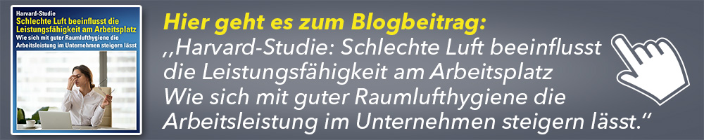 Eine US-Studie der Universität Harvard hat gezeigt, dass mit Feinstaupartikeln und erhöhten CO2-Konzentrationen belastete Innenraumluft neben den bekannten gesundheitlichen Auswirkungen wie Herz-Kreislauf-Erkrankungen, Kopfschmerzen, Müdigkeit und Allergien zu einer Verringerung der kognitiven Fähigkeiten führen kann, was in der Folge auch die Leistungsfähigkeit am Arbeitsplatz beeinträchtigt.