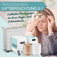 Alle wissenschaftlichen Untersuchungen zeigen, dass die gesamte Immunabwehr der Schleimhäute entscheidend von der Raumluftfeuchte abhängt. Als Komfortbereich für Büro- und Arbeitsräume wird deshalb von allen Experten eine relative Luftfeuchtigkeit zwischen 40 und 60 Prozent empfohlen. Wenn Sie auf ausreichend feuchte, frische Luft im Raum achten möchten, erreichen Sie dies am einfachsten durch regelmäßiges Lüften und durch den Einsatz eines professionellen Luftbefeuchters.
