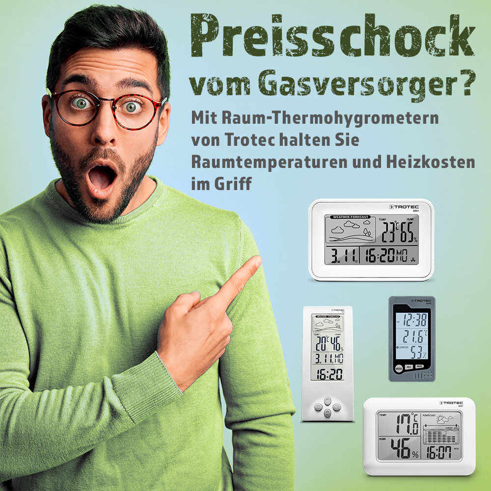 Wer es genau wissen möchte – und das sollte man bei den aktuellen Preisen für Gas – findet in den Trotec-Raumhygrometern praktische Helfer, um die Temperatur in allen Räumen ohne thermostatgesteuerte Heizungsanlage zu überwachen und gradgenau einzustellen.