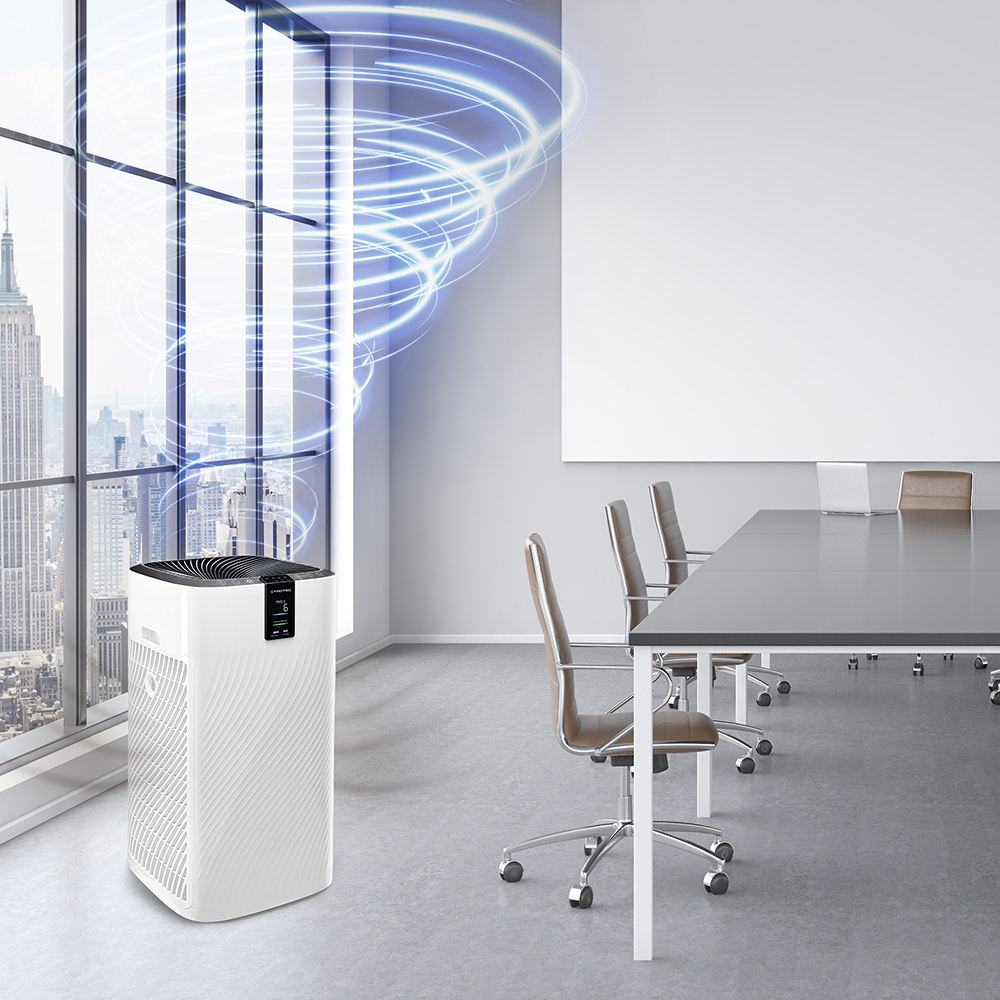 Zwölf Prozent der Befragten gaben an, dass mobile Luftreiniger im Büro eingesetzt werden. Den Einsatz dieser Geräte empfanden 33 Prozent als angenehm und lediglich drei Prozent als störend. Damit mobile Luftreiniger die Arbeit fördern und nicht stören, sollte man bei der Auswahl auf eine möglichst geringe Geräuschentwicklung Wert legen. Mit optionalen Schallkappen erzeugt der für Büroumgebungen empfohlene Hochleistungsluftreiniger TAC V+ beispielsweise je nach Leistungsstufe lediglich ca. 30 dB. Zum Vergleich: Ein handelsüblicher Laserdrucker erzeugt im Betrieb bereits einen Lärmpegel von rund 50 dB.