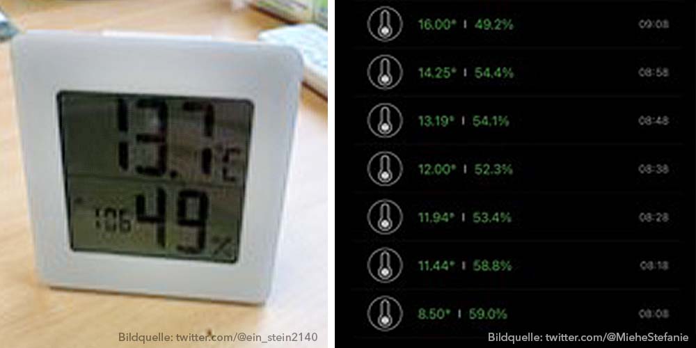 Schaut man sich die geposteten Bilder aus den Klassenräumen an, fröstelt es einen bereits beim Ansehen. Von 8 – 16 Grad ist alles dabei.