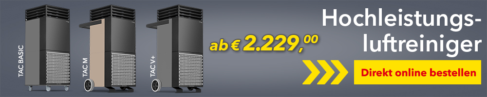 Zahlreiche Untersuchungen und Pilotprojekte in Schulen attestieren den Trotec-Hochleistungsluftreinigern eine hohe Wirksamkeit in der Vermeidung indirekter Ansteckung mit dem Coronavirus – allen voran die vielbeachteten Studien von Prof. Christian Kähler. Der Münchner Aerosolexperte hatte bereits im vergangenen Jahr nachgewiesen, dass sich die Virenlast in geschlossenen Räumen durch TAC V+ Hochleistungsluftreiniger in kürzester Zeit auf ein nahezu ungefährliches Niveau reduzieren lässt.