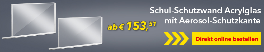 1. Trennwände mit Aerosol-Schutzkante machen das Tragen von Masken überflüssig. Transparente Schutzwände zwischen den Sitzplätzen verhindern, dass sich die Schüler durch umherfliegende Tröpfchen oder bei der Atmung freigesetzte Aerosole des direkten Tischnachbarn mit dem Covid-19-Erreger infizieren. Die glasklaren Trennwände mit Aerosol-Schutzkante bieten einen zuverlässigen Schutz vor größeren Tröpfchen und verhindern zudem, dass die von den Schülern ausgeatmeten Aerosole die Trennwand überwinden und zum Sitznachbarn schweben. Das Tragen einer Maske ist nicht mehr erforderlich. Lediglich beim Verlassen des Platzes muss eine Maske getragen werden.