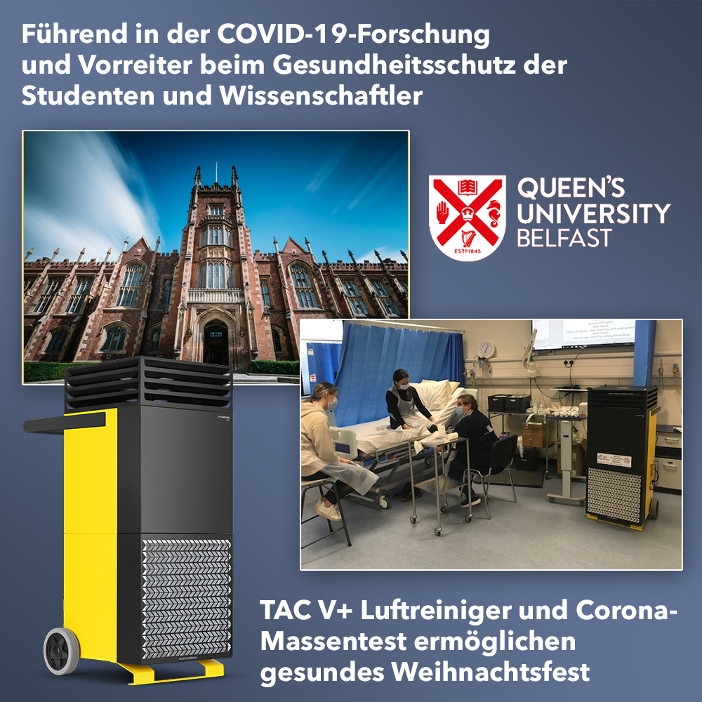 Insgesamt 30 TAC V+ Hochleistungsluftreiniger wurden für die verschiedenen Forschungsabteilungen, Hörsäle und medizinischen Ausbildungseinrichtungen angeschafft. Die Luftreiniger ergänzen das ohnehin strenge Hygienekonzept an der Universität um eine hochfrequente Luftreinigung, zum Schutz vor potentiell virenbehafteten Aerosolen in der Luft. Diese für das Auge unsichtbaren Mikropartikel, so die einhellige Meinung der Wissenschaft, sind die Hauptüberträger des Coronavirus und für rund 80 Prozent der Corona-Infektionen weltweit verantwortlich.