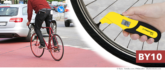 Sicherheit beim Radfahren hört nicht bei dem richtigen Reifendruck auf, fängt aber stets damit an: Bestellen Sie das BY10 Reifendruckmessgerät – jetzt im Trotec-Shop!