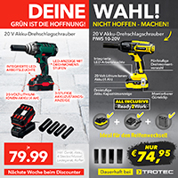 Beim Discounter gibt es nächste Woche einen Akku-Drehschlagschrauber als Sonderangebot. Aber ist das wirklich ein Schnäppchen? Nein, denn bei TROTEC gibt es einen direkt vergleichbaren Akku-Drehschauber noch günstiger!