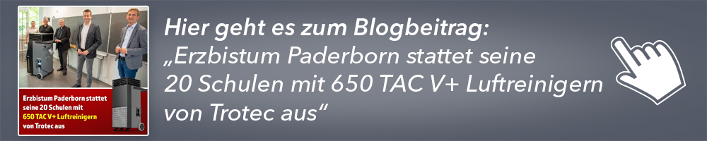 Mobile TAC V+ Hochleistungsluftreiniger von Trotec senken das indirekte Ansteckungsrisiko in Klassenräumen erheblich. Zahlreiche Untersuchungen und Pilotprojekte in Schulen attestieren den Trotec-Hochleistungsluftreinigern eine hohe Wirksamkeit in der Vermeidung indirekter Ansteckung mit dem Coronavirus – allen voran die vielbeachteten Studien von Prof. Christian Kähler. Der Münchner Aerosolexperte hatte bereits im vergangenen Jahr nachgewiesen, dass sich die Virenlast in geschlossenen Räumen durch TAC V+ Hochleistungsluftreiniger in kürzester Zeit auf ein nahezu ungefährliches Niveau reduzieren lässt.