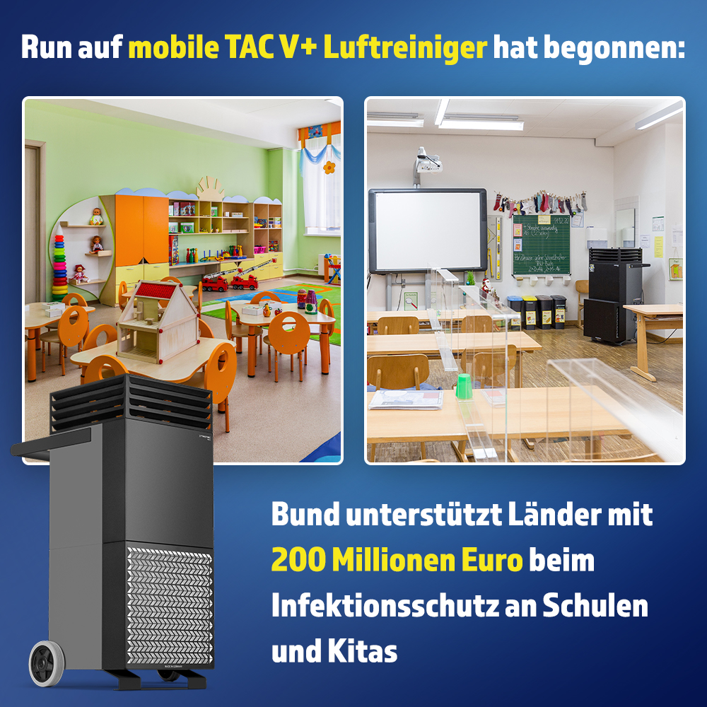 Die Bundesregierung stellt den Ländern 200 Millionen Euro zur Verfügung, um sie bei der Beschaffung von mobilen Luftreinigern für Schulen und Kitas zu unterstützen.