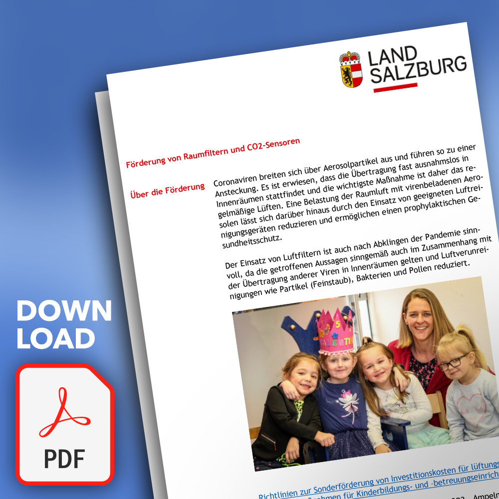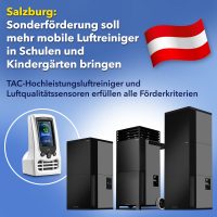 Die Bestellungen der Kinderbetreuungseinrichtungen blieben weit hinter den Erwartungen zurück. Zu teuer sei die Finanzierung der Geräte – so der Tenor. Um die Beschaffung von mobilen Luftreinigern voranzutreiben, hat das zuständige Ressort von Landesrätin Andrea Klambauer nun entschieden, die Deckelung von 20.000 Euro zu streichen und das Förderprogramm für Kinderbetreuungseinrichtungen bis zum 31. Oktober 2021 zu verlängern. Des Weiteren wurde am 21.09.2021 eine Sonderförderung von Investitionskosten für Lüftungsunterstützende Maßnahmen für Kinderbildungs- und -betreuungseinrichtungen vom Land Salzburg verabschiedet.