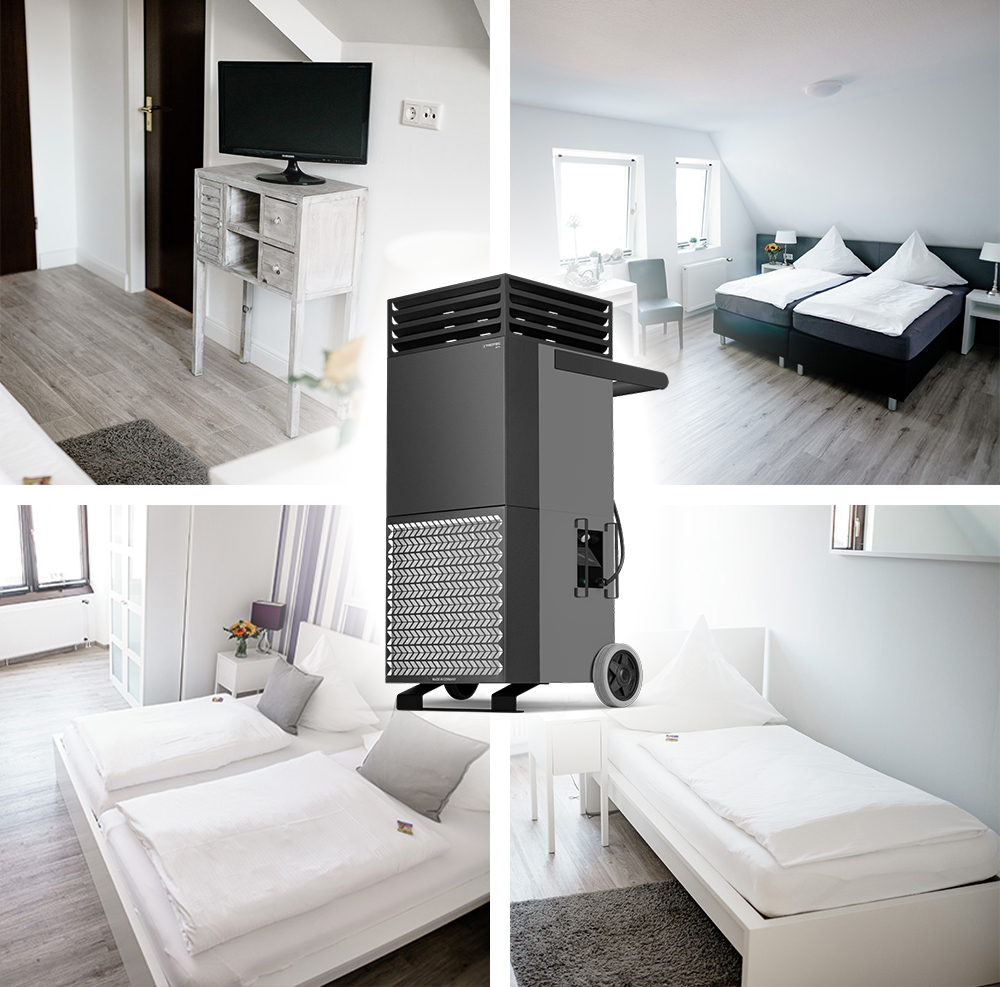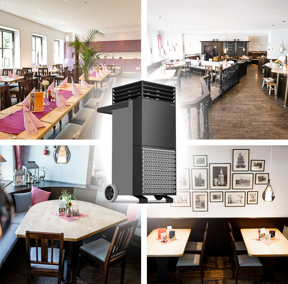 Das Umweltbundesamt empfiehlt regelmäßiges Lüften (AHA+L), um mitunter infektiöse Aerosolpartikel ins Freie zu befördern. In der Praxis ist das für ein Hotel oder Restaurant jedoch nicht umsetzbar. Zumindest nicht ohne das Wohlbefinden der Mitarbeiter und Gäste zu beeinträchtigen oder Erkältungskrankheiten billigend in Kauf zu nehmen. Auch hinsichtlich der Heizkosten sind offene Fenster im Winter eine massive Energieverschwendung.