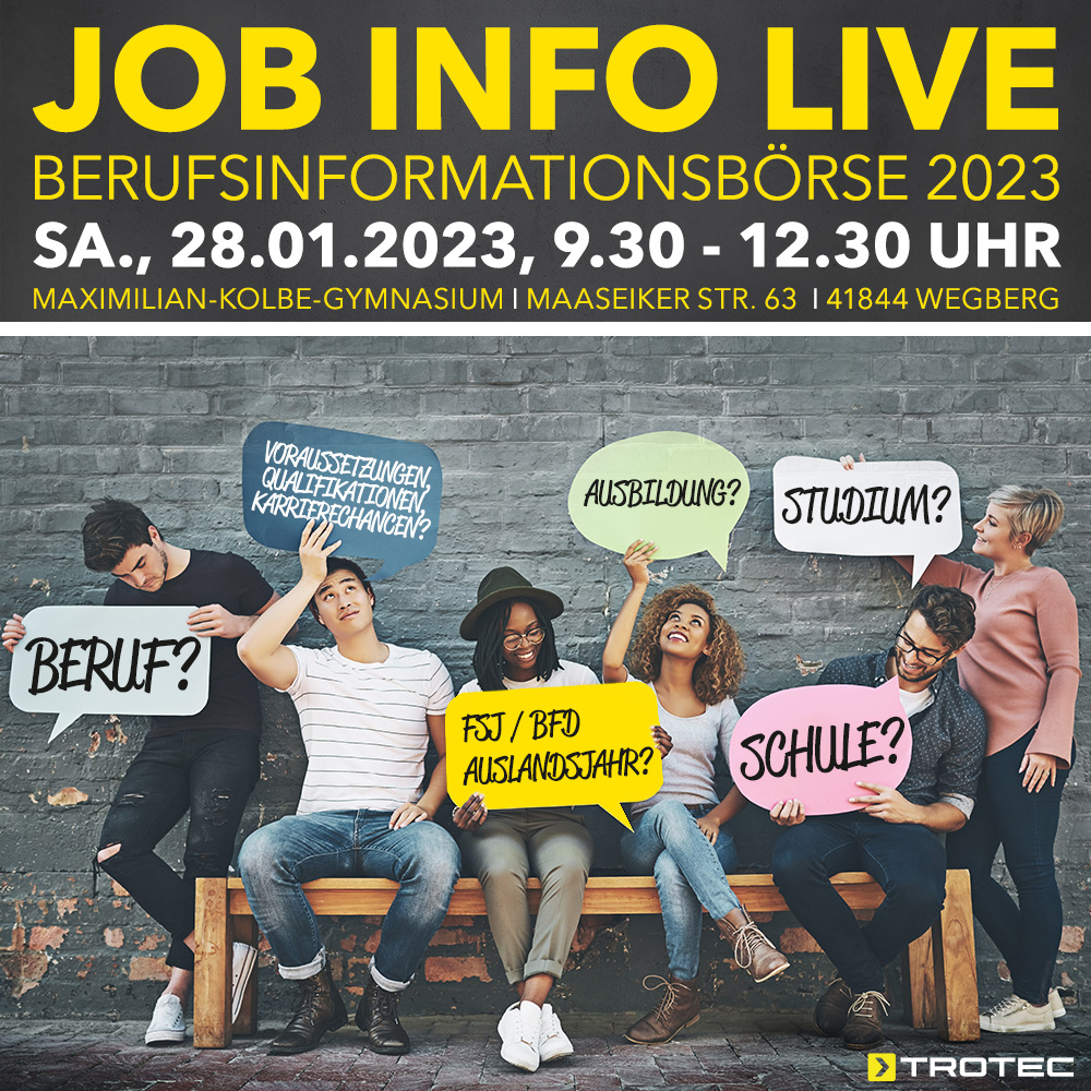 Die Informationsbörse „Job Info Live“ informiert über unterschiedliche Berufsfelder. Insgesamt werden mehr als 1000 Teilnehmer am Samstag, den 28. Januar 2023 im Wegberger Gymnasium erwartet.