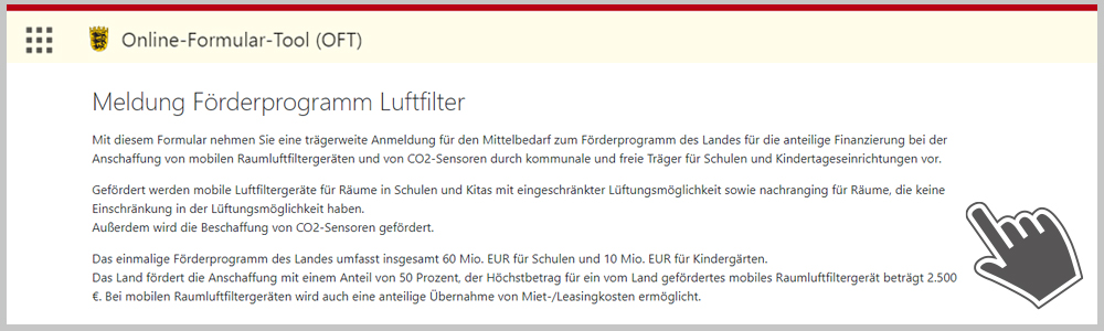 Schulträger in Baden-Württemberg können ihren Mittelbedarf ab sofort über die nachfolgende Seite beantragen: