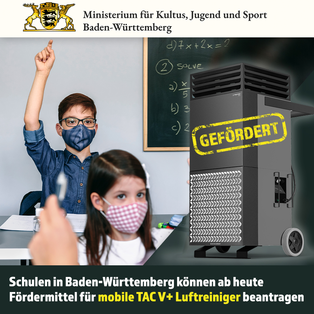 Das Kultusministerium von Baden-Württemberg hat am Freitag den Startschuss für die Förderung von mobilen HEPA-Luftreinigern für Schulen und Kindertageseinrichtungen gegeben. Jetzt können endlich auch öffentliche und freie Träger in Baden-Württemberg Fördermittel für die Anschaffung von geeigneten Luftreinigern und CO2-Ampeln beantragen, um sich bestmöglich auf die von Experten prognostizierte vierte Infektionswelle im Herbst vorzubereiten. Zuvor hatten sich die kommunalen Träger von Schulen eher zurückhaltend hinsichtlich der Beschaffung von mobilen Luftreinigern für schlecht zu lüftende Klassenräumen gezeigt. Über die Anschaffung mobiler Luftreiniger wurde zwar vielerorts diskutiert, Entscheidungen wurden aber zumeist aus Kostengründen vertagt.