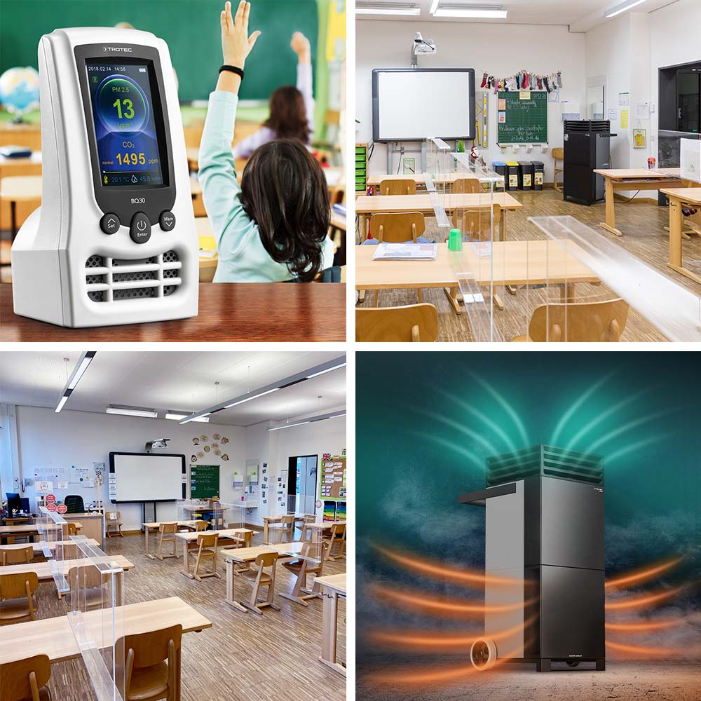 Infektionsschutz-Lösungen von Trotec ermöglichen eine sichere und unkomplizierte Rückkehr zur Normalität im Schulalltag – trotz Corona. Auch bei den jährlich wiederkehrenden Grippewellen können unsere CO2-Ampeln und Hochleistungsluftreiniger der TAC-Serie wirksam vor einer aerogenen Infektion mit Influenzaviren schützen. Die Investitionskosten werden bei positivem Fördermittelbescheid ganz oder teilweise durch die jeweiligen Förderprogramme von Bund und Ländern übernommen.