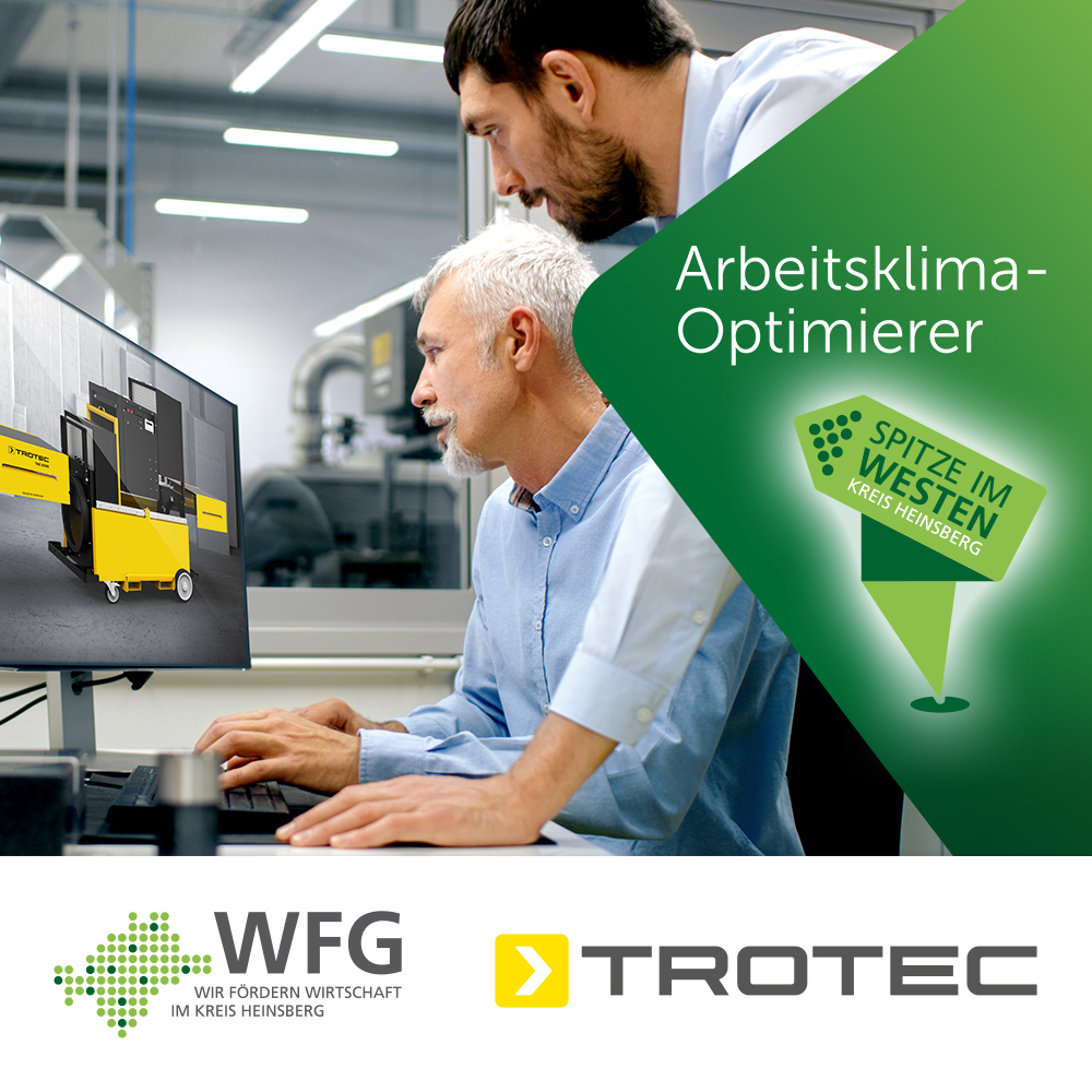 Trotec unterstützt die Marketing-Aktion der WFG auf der Kampagnen-Website unter https://spitze-im-westen.de/firmen/trotec mit unserer Präsentation als „Arbeitsklima Optimierer“. Denn genau als solche verstehen wir uns aufgrund der kurzen Entscheidungswege und innovativen Arbeitszeitkontenmodelle, die wir unseren Mitarbeitern bieten. Darüber hinaus sorgen wir mit passgenauen Weiterbildungsangeboten auch noch für spitzenmäßige Karrierechancen in unserem Unternehmen. Und die Bandbreite innovativer Produktlösungen, mit denen wir unsere Kunden regelmäßig begeistern können, sichert Elektro- und Klimatechnik-Ingenieuren, Programmierern, E-Commerce-Spezialisten und Produktmanagern spannende Zukunftsperspektiven – und nicht zuletzt auch die Arbeitsplätze unserer Mitarbeiter!