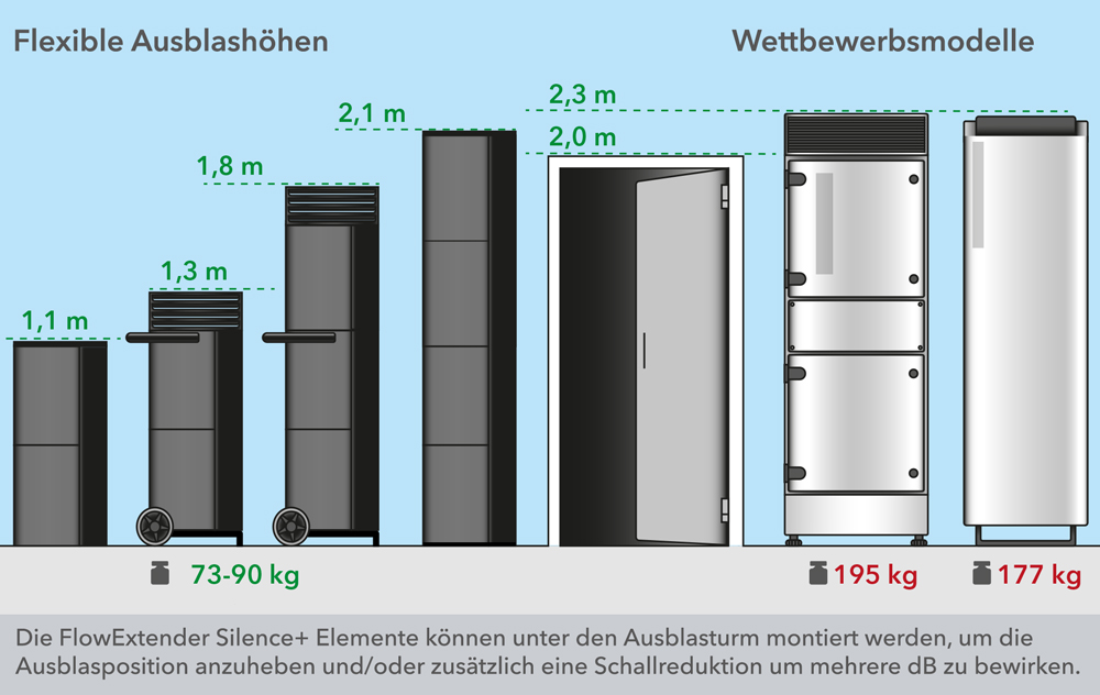 - Kompakte Abmessungen und geringe Aufstellfläche – ca. 1 Meter Gerätehöhe
