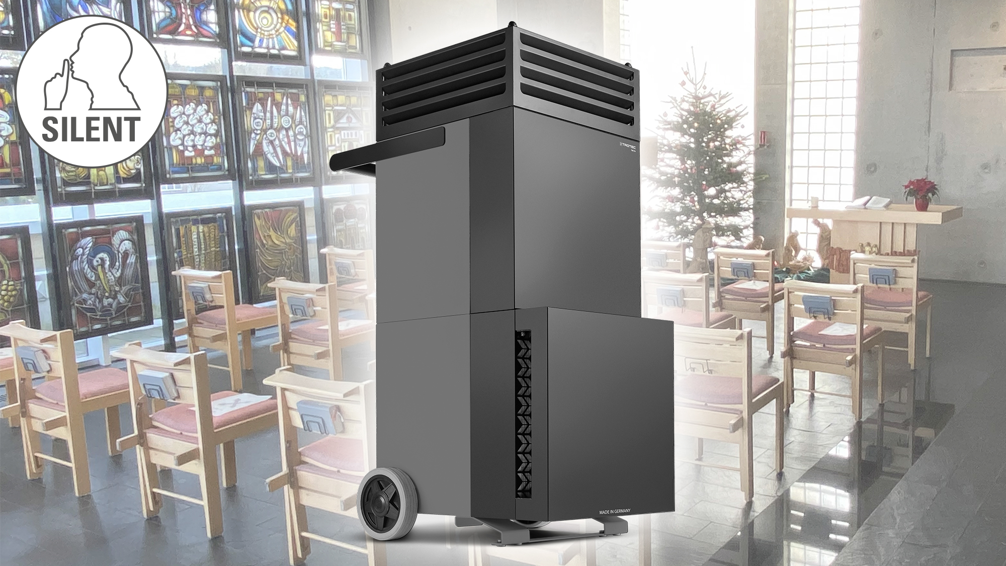 3. Der Luftreiniger muss hinreichend geräuscharm sein, damit er im Betrieb nicht stört. Denn stört der Lärm, dann besteht die Gefahr, dass das Gerät entweder abgeschaltet oder nicht mit dem erforderlichen Volumenstrom betrieben wird. Eine hohe Sicherheit vor einer indirekten SARS-CoV-2 Infektion ist dann nicht mehr gegeben. Daher verfügt der Hochleistungsluftreiniger TAC V+ über eine geräuschdämmende Schallschutzhaube, die ihn zum leisesten Gerät seiner Leistungsklasse macht.