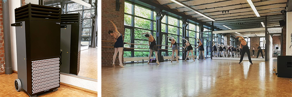 Weil für einen professionellen Tänzer ein gut aber nie gut genug ist, hat Carla Brettschneider über die Coronaschutzverordnung hinaus „vorgesorgt“. Sobald der Unterricht in den lichtdurchfluteten Räumen des historischen Gebäudes in Aachen-Burtscheid wieder möglich ist, wird ein TAC V+ Hochleistungsluftreiniger während der Unterrichtsstunden dafür Sorge tragen, dass die Virenlast in der Raumluft stets auf einem niedrigen und somit ungefährlichen Niveau bleibt. Ohne offene Fenster und regelmäßiges Stoß- oder Querlüften. Wie soll das im Winter auch gehen? Die Tänzerinnen und Tänzer kommen während des Unterrichts ins Schwitzen. Offene Fenster, wie es das Umweltbundesamt und die Politik empfehlen, würden zwangsläufig zu zahlreichen Erkältungen unter den Schülern führen. Aus diesem Grund hat sich die Tanzschule für die „bessere Alternative“ entschieden.