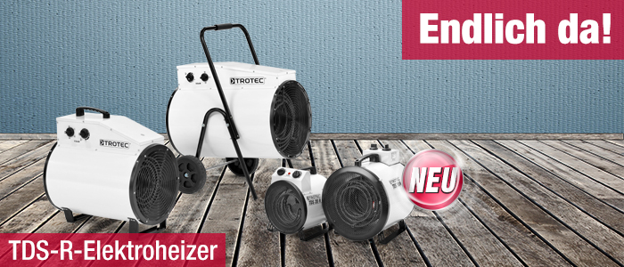 Das Warten hat ein Ende, denn endlich ist die budgetschonende Alternative für die Warmluftbeheizung da: unsere vier neuen TDS-R-Elektroheizer. Die transportablen Heizer bringen Sie warm und günstig durch den Winter mit einer Heizleistung von 3 bis 30 kW je nach Modell.