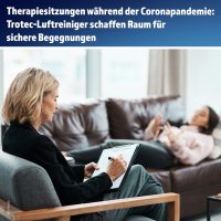 Einen hohen Schutz vor luftgetragenen Ansteckungsrisiken während der Therapiesitzung ermöglichen mobile Trotec-Hochleistungsluftreiniger. Eigens für die Aerosolfilterung konzipiert und mit einem hocheffizienten HEPA-Filter der Filterklasse H14 (zertifiziert nach EN 1822) ausgestattet, reduzieren Raumluftreiniger der TAC-Serie sowie der eigens für Praxen entwickelte Design-Hochleistungsluftreiniger AirgoClean One die Zahl der Aerosolpartikel im Raum um bis zu 99,995 Prozent – und das bereits nach wenigen Minuten.