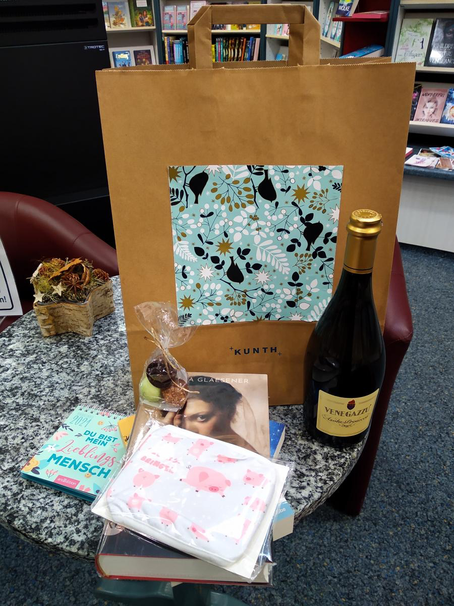 Während Onlineversender wie Amazon mit unendlicher Auswahl und Same-Day-Lieferung punkten, setzen die Mitarbeiter der alteingesessenen Buchhandlung auf ausgewählten Lesestoff – garniert mit einer Flasche Wein, Prosecco, einer kleinen Süssigkeit und einer winterlichen Alltagsmaske. Portofrei geliefert zum Sonderpreis. Das kann selbst Amazon nicht leisen!