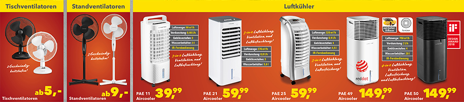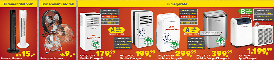 Im Trotec OUTLET haben wir aktuell Ventilatoren, Klimageräte, und Luftkühler im Angebot. Das bedeutet, dass diese Versandretouren und B-Ware-Geräte noch günstiger sind, als ohnehin schon. Eigentlich kaum vorstellbar!