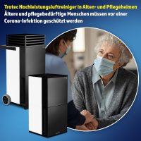 „Eine hohe Raumluftqualität ist für den Schutz der Bewohnerinnen und Bewohner in Pflegeeinrichtungen unerlässlich“, sagt Jochem Weingartz, Trotec-Raumluftexperte und ergänzt: „Ein mobiler TAC V+ Hochleistungsluftreiniger beseitigt nahezu 100 % aller Krankheitserreger aus der Raumluft – genau genommen 99,995 %. Aber nicht nur Viren wie das Corona- oder Influenza-Virus werden aus der Luft gefiltert. Auch für ältere Menschen mit Atemwegserkrankungen ebenso schädliche Feinstaubpartikel, allergieauslösende Schwebstoffe und Pollen beseitigen die mobile einsetzbaren Hochleistungsluftreiniger nahezu rückstandslos und sorgen so für ein Höchstmaß an reiner Luft“.