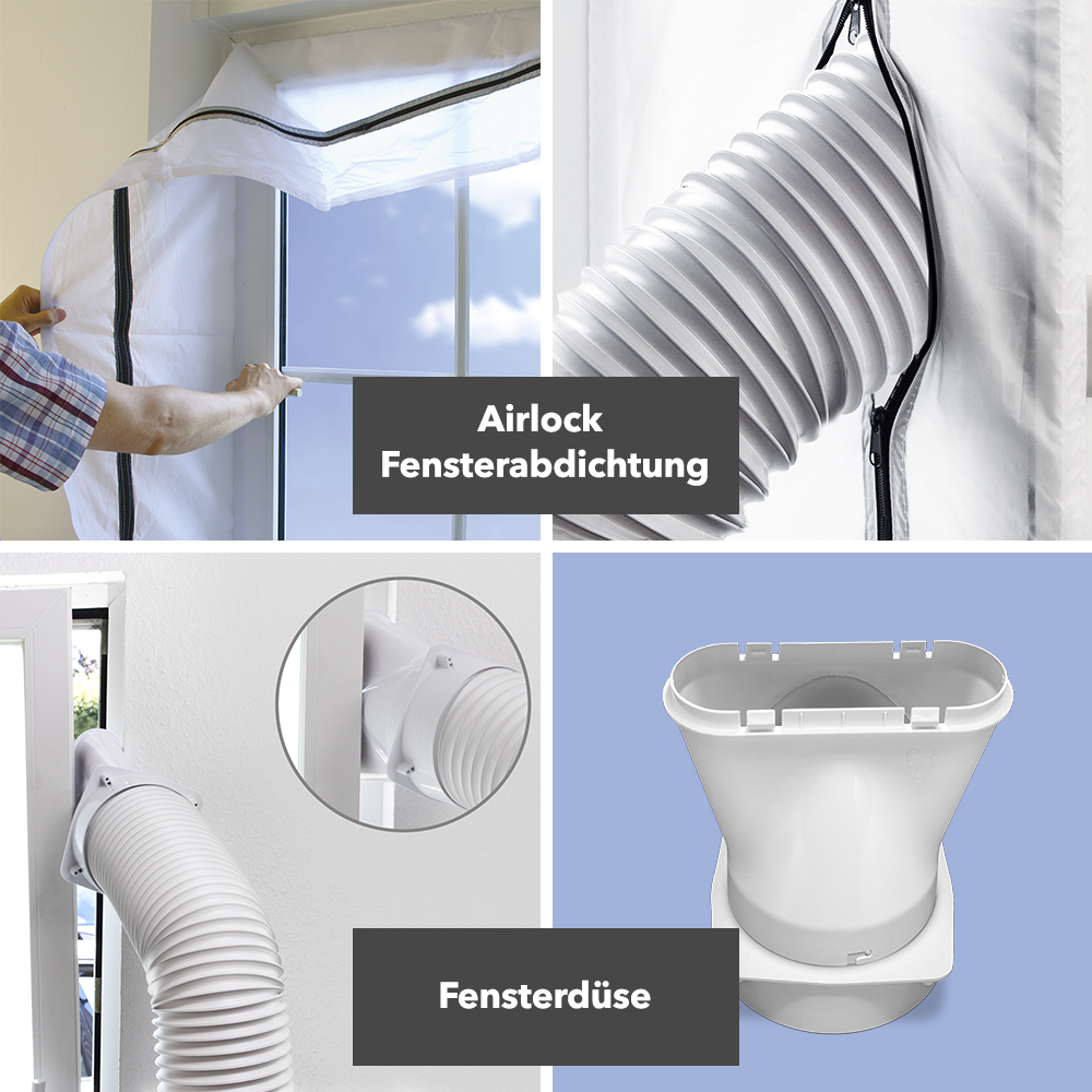 Nur die kühle Luft des Klimagerätes gelangt ins Innere hinein. Schlafraubende Hitze, Insekten und die Betriebsgeräusche des Klimagerätes bleiben draußen.